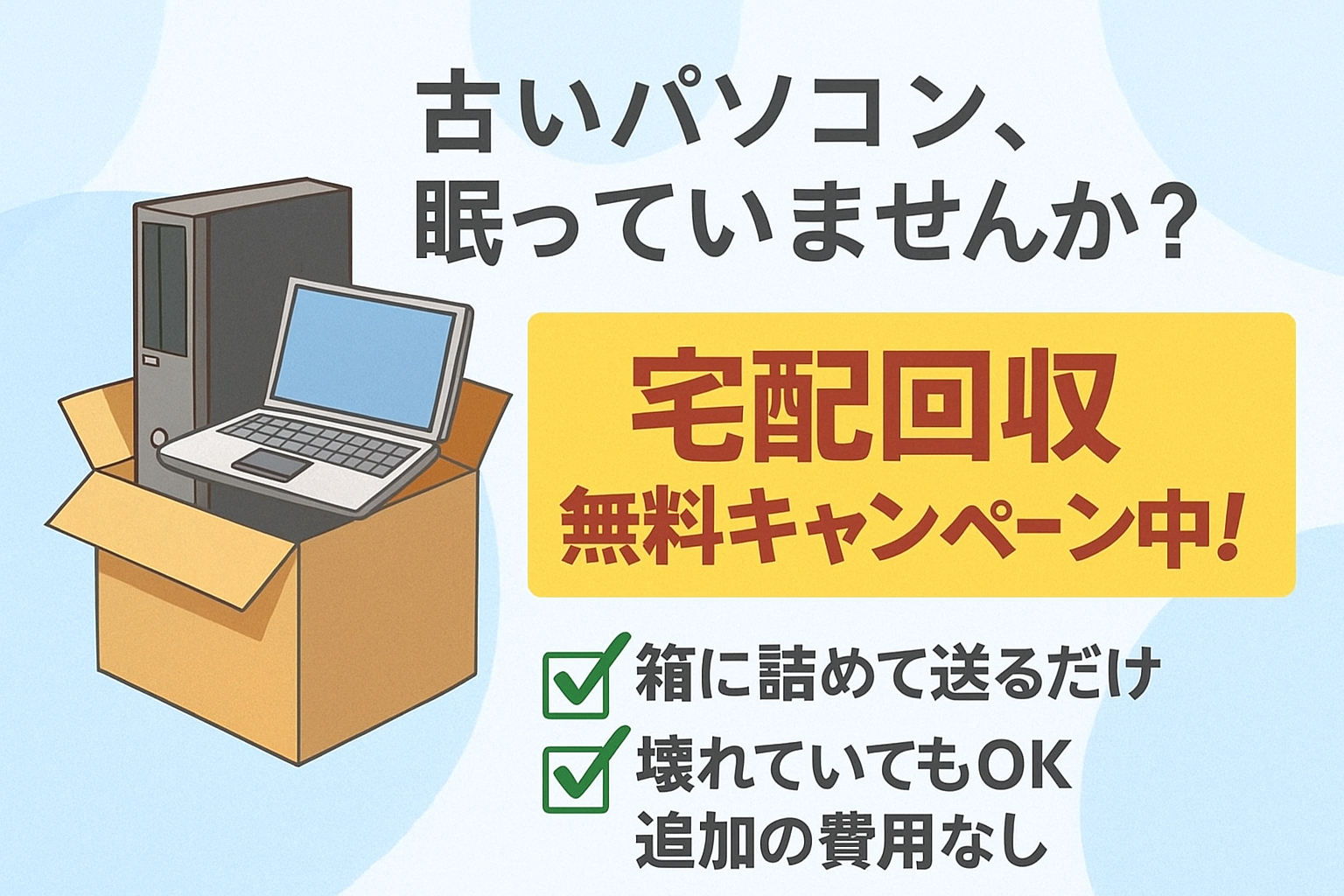 #コスパ 眠ったままのパソコンどうする?宅配回収でラクしてスッキリ処分しよう! 壊れたパソコンや小型家電の処分に困っていませんか?本記事では、国認定の宅配回収サービスを使って、安全・お得にリサイクルする方法をわかりやすく解説。 2025.10.17 #コスパUncategorizedリサイクル廃品回収新生活